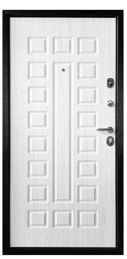 Входная стальная дверь. Внешняя сторона – металл, покрытый износостойкой порошковой краской, цвет «Антик тёмно-коричневый». Внутренняя сторона – панель МДФ 8 мм «Белёный дуб».