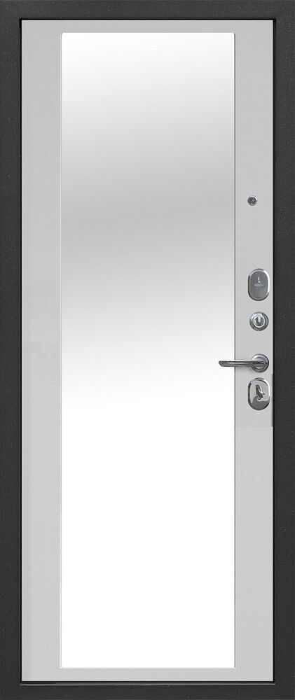 Входная дверь Гарда Серебро Зеркало/ Белый ясень