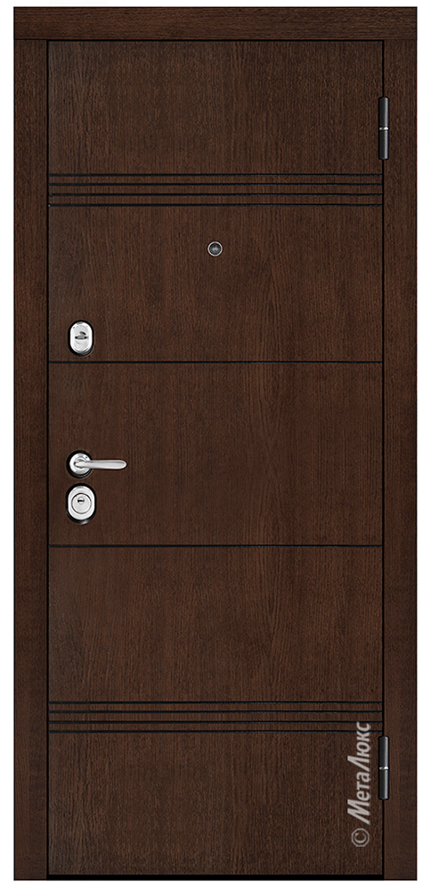 УСТАНОВКА Квартира/Улица (может быть установлена на улице под защитный козырек или навес, при наличии холодного тамбура) РАЗМЕРЫ 870, 960 * 2050 мм ТОЛЩИНА ПОЛОТНА 100 мм ТОЛЩИНА КОРОБА 126 мм ПОКРЫТИЕ МЕТАЛЛА «Муар», цвет черный ТОЛЩИНА МЕТАЛЛА ПОЛОТНА 1,2 мм ТОЛЩИНА МЕТАЛЛА КОРОБА 1,5 мм НАПРАВЛЕНИЕ ОТКРЫВАНИЯ Дверь наружного открывания ОТДЕЛКА СНАРУЖИ ArtWood panel, 16 мм, цвет «Темный орех», патина ОТДЕЛКА ВНУТРИ Влагостойкая панель МДФ 12 мм, эмаль, цвет «Белый», текстура «Гладкая» ТЕРМОИЗОЛИРУЮЩИЙ СЛОЙ Пенофол - универсальный многослойный фольгированный, обладающий высокими показателями тепло-, гидро-, паро-, звукоизоляции и долговечности. Обеспечивает высокую тепловую защиту и создает здоровый микроклимат в помещении НАПОЛНЕНИЕ Минеральная вата высокой плотности. Это экологически чистый, нетоксичный и негорючий материал, который обладает высокими теплоизолирующими свойствами. ОСОБЕННОСТИ КОНСТРУКЦИИ • Дополнительную жесткость конструкции придает особое расположение ребер (2 вертикальных, 2 горизонтальных) • Усиление зоны петель легированным металлом квадратного сечения