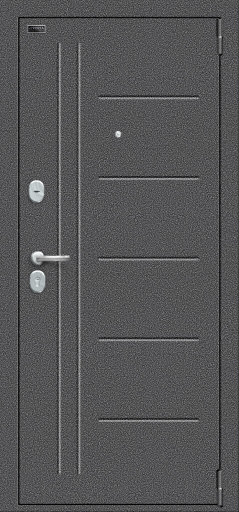 Стальной дверной блок произведен на уникальных автоматизированных линиях и роботизированных комплексах ведущих зарубежных производителей. Сверхпрочная конструкция "6x2" - двойная толщина стали профиля полотна, двух контуров коробки, в зонах замка и петель. Ребро жесткости шириной (!) более 200 мм. Дополнительную безопасность обеспечивают два противосъемных штыря. Двери поставляются в правом и левом исполнении, имеют два базовых размера 2050*880 / 2050*980.