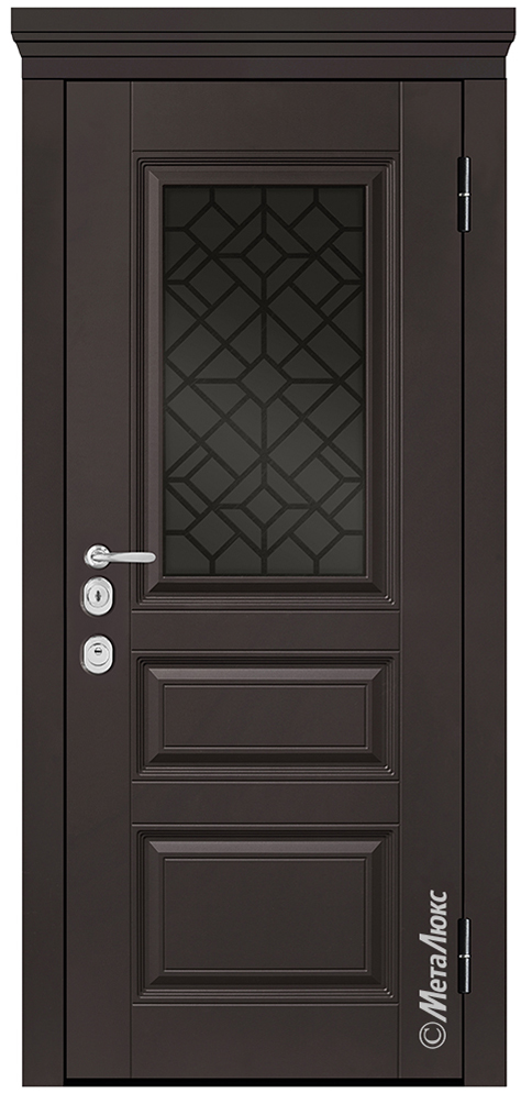 - Отделка снаружи: Фрезерованная влагостойкая панель МДФ высокой плотности 16 мм, эмаль, цвет "Горький шоколад", стеклопакет с вкладной декоративной решеткой